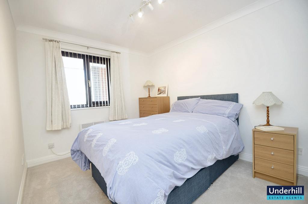 Inside, the apartment is bright, airy, and thoughtfully presented, with electric heating and double glazing throughout. The hallway, bedrooms and living room all feature plush carpets. The apartment is equipped with ample storage. The entrance area has a built-in cupboard-ideal for coats and shoes; a wall-mounted folding stool is also fitted to help with putting on shoes.