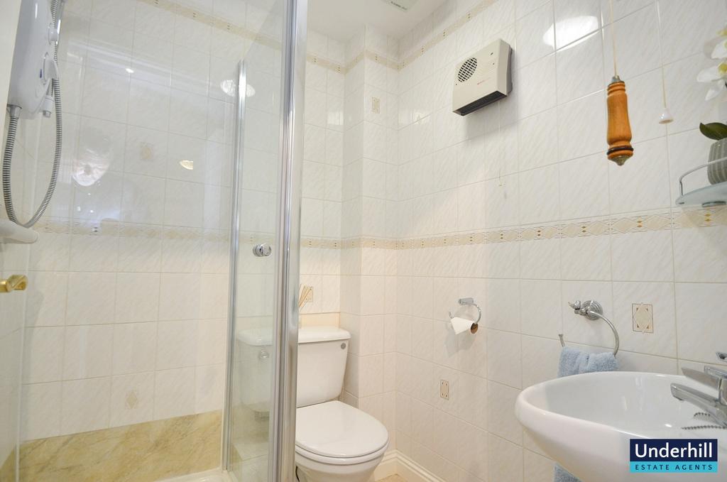 This fully tiled room benefits from a shower cubicle with electric shower, pedestal basin, W.C.A wall-mounted heater provides additional warmth.