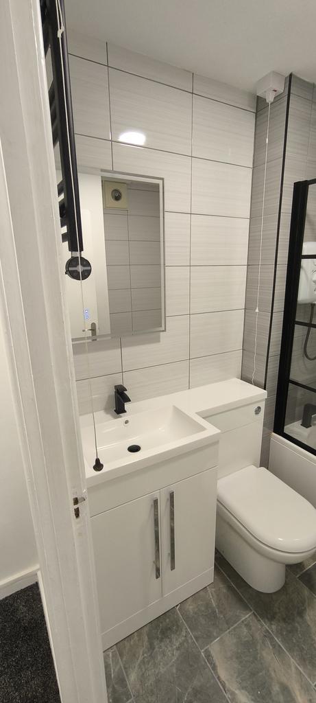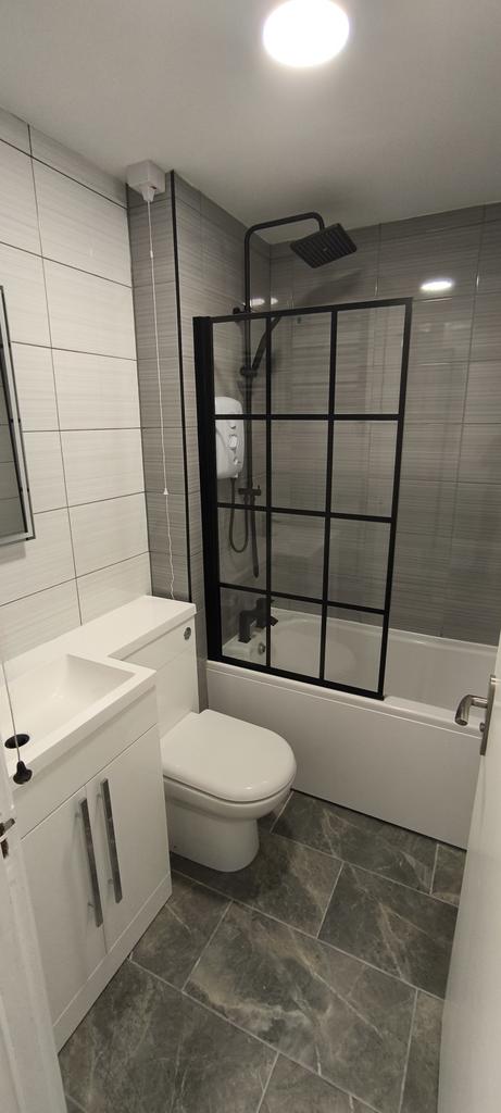 Bathroom - Modern Bath with shower screen, Electric Shower, Wanity Sink and TC Unit, Towel Radiator