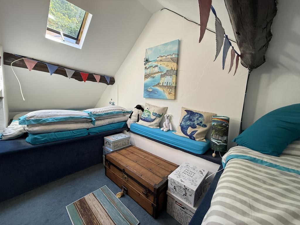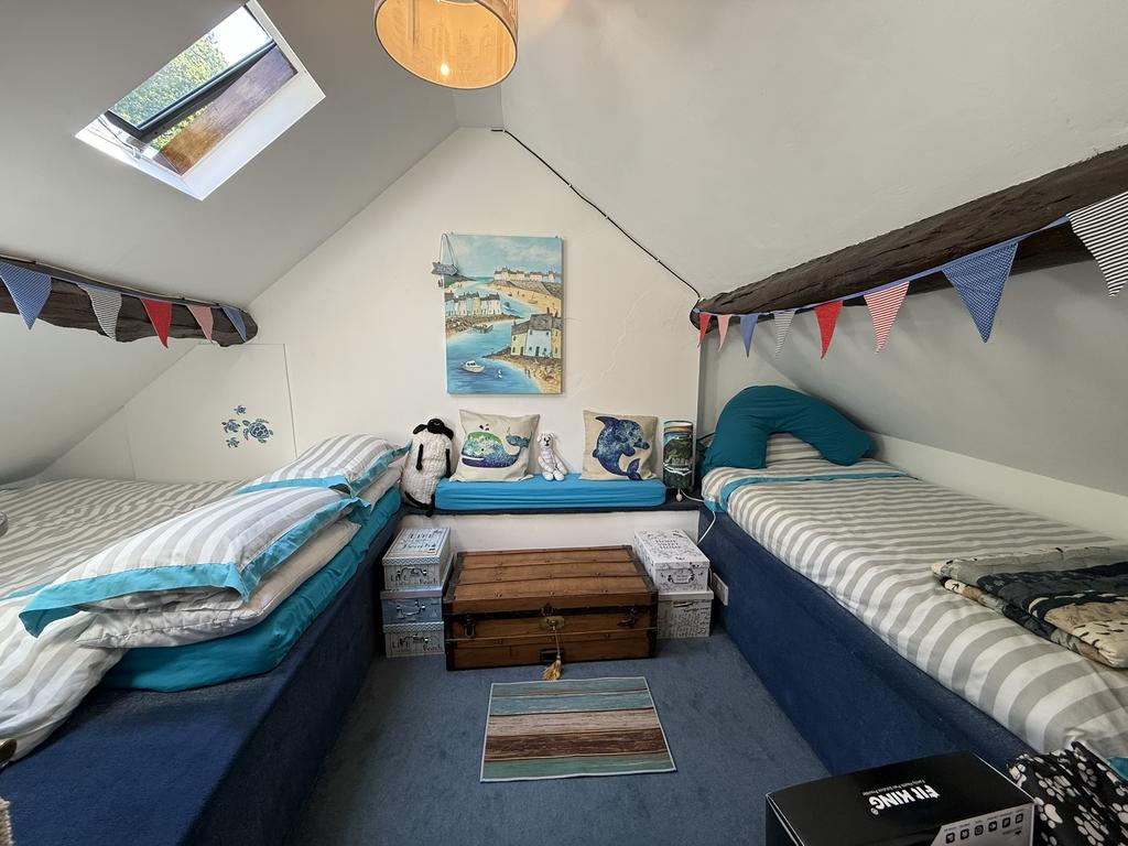 Sloping ceilings, built in double and single beds, two skylight windows concealed water tank.