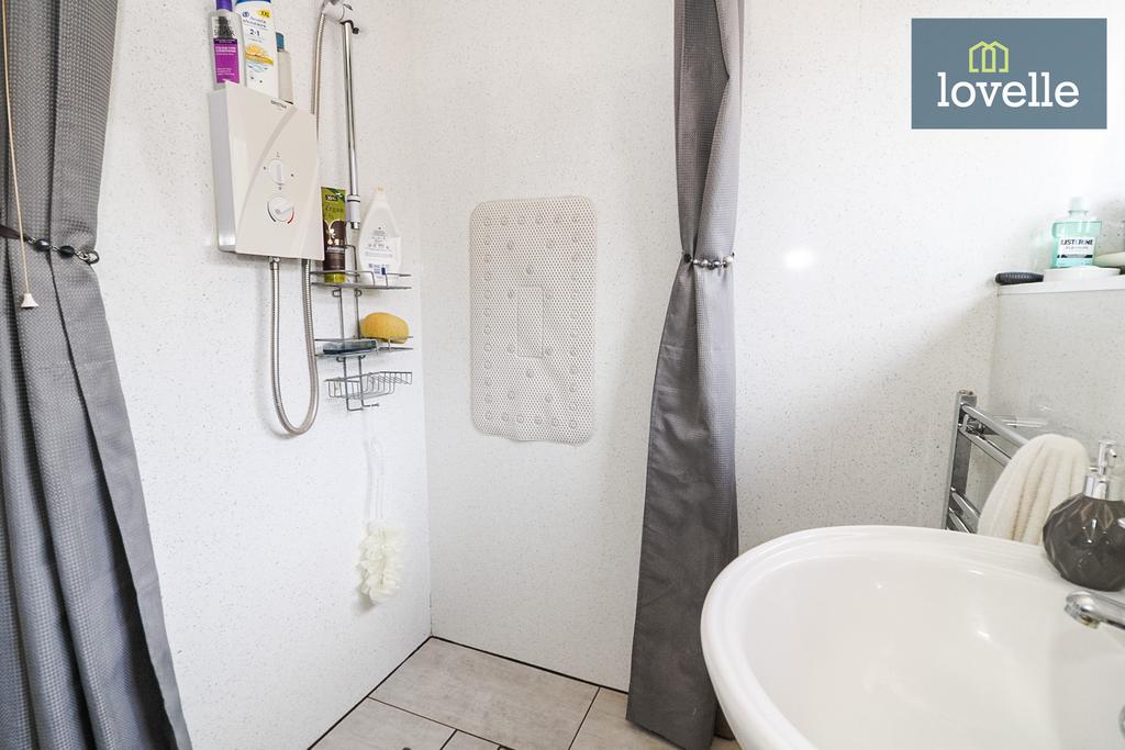The neat kitchen is well-equipped with a hob, an oven, and space for a washer and dining table. It also provides easy access to the garden, perfect for alfresco dining. The property features a shower room, equipped with a WC, sink, and shower.