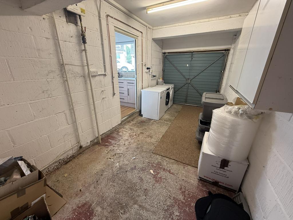 Up and over door to front, plumbing for washing machine, power and lighting connected, wall mounted gas metre and electric fuse board and large under stairs storage cupboard.