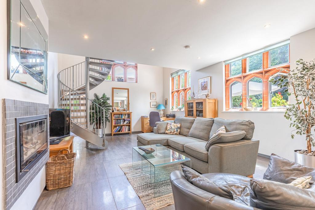 The ground floor is primarily dedicated to the breath-taking open plan reception housing the contemporary kitchen; a wonderful juxtaposition to the original brick mullion windows the adorn this impressive space. The large breakfast bar island lends itself to sociable hosting whilst ample space for a dining table caters for more traditional dining affairs. As one ventures further into the main reception, the seating area sits under the watch of the striking spiral staircase and galleried. A well equipped utility and ground floor shower room take care of the practicalities.