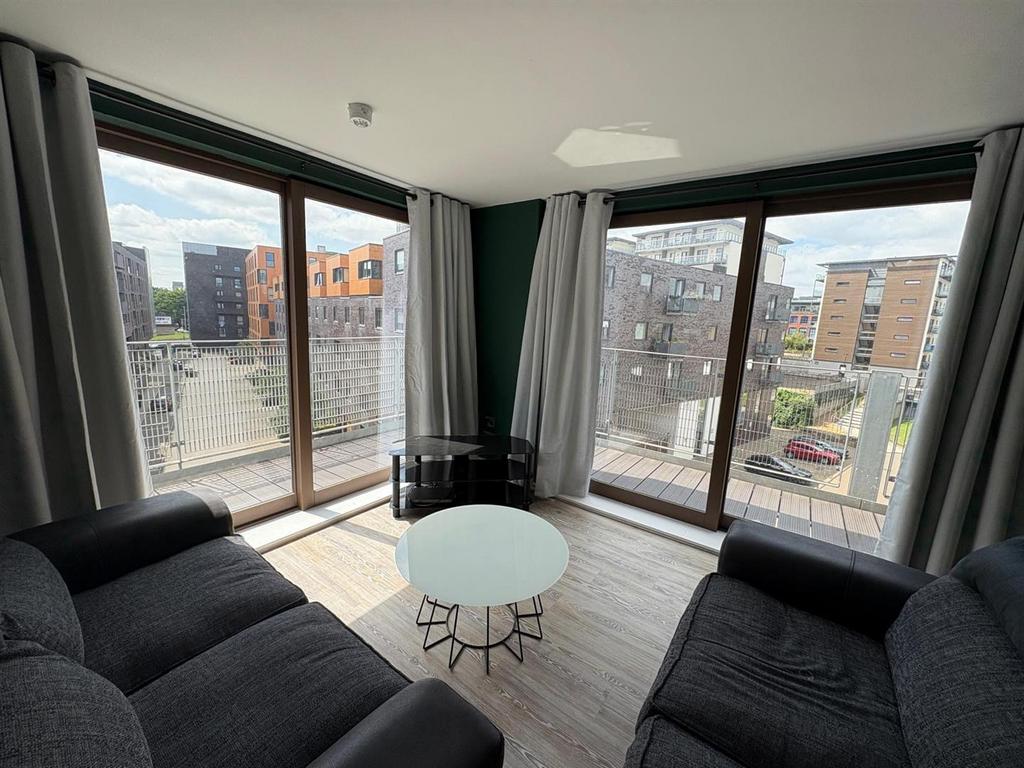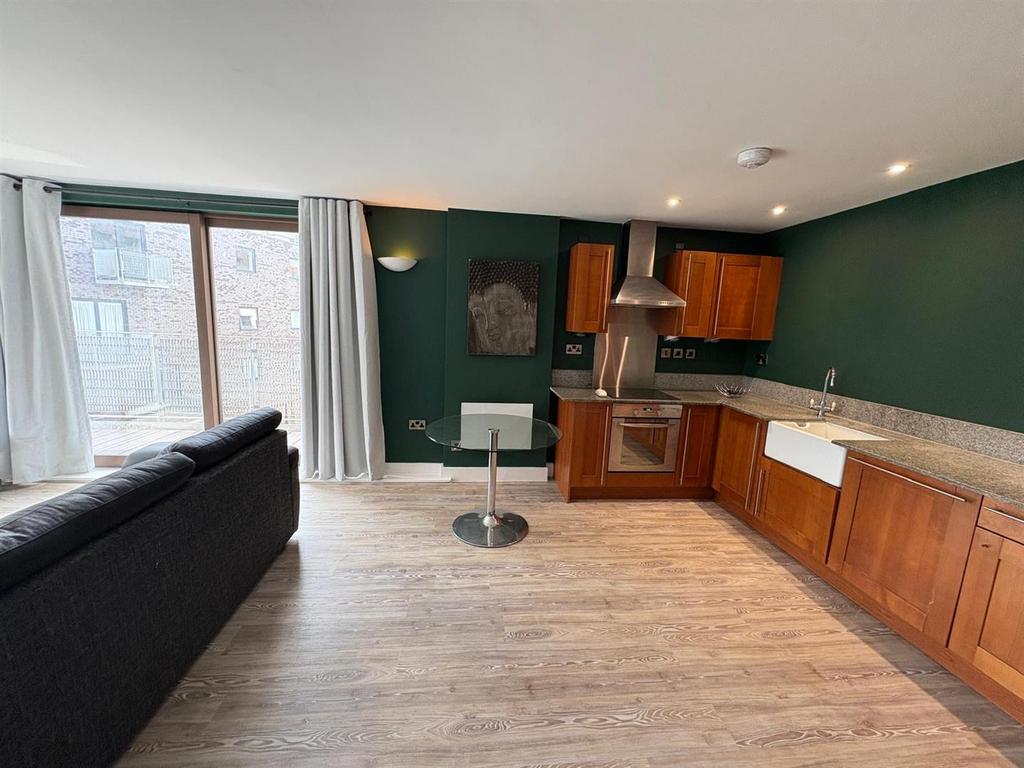 Lounge / Kitchen - 7.29 x 3.46 (23'11" x 11'4") - Superb corner apartment with twin patio doors leading to the balcony, LVT flooring. Range of wall and base units with worktops over. Sink with mixer tap. Cooker with hob and extractor over. Integrated fridge/freezer and dishwasher. Cupboard housing hot water system and washing machine. Wall mounted heater. Spotlights. TV and telephone point.