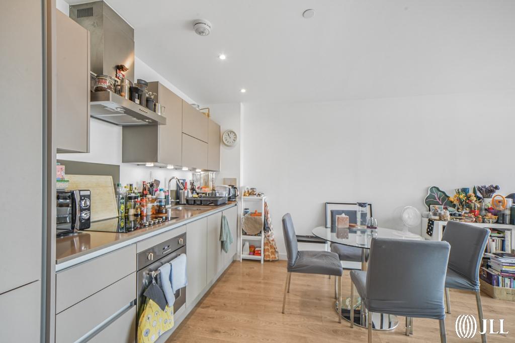 Located on the 7th floor with convenient lift access within one of Stratford's most sought-after developments, Legacy Tower E15. The interior showcases bespoke fixtures and fittings throughout, finished to the highest standard. The high specification kitchen with fully integrated SMEG appliances, handle-less fitted units and engineered stone worktops. The bathroom offers bespoke cabinetry and ceramic tiling, while the bedroom features a fitted wardrobe. Additional comforts include underfloor heating throughout and a video intercom system. The thoughtful layout comprises an entrance hall with a large storage cupboard.