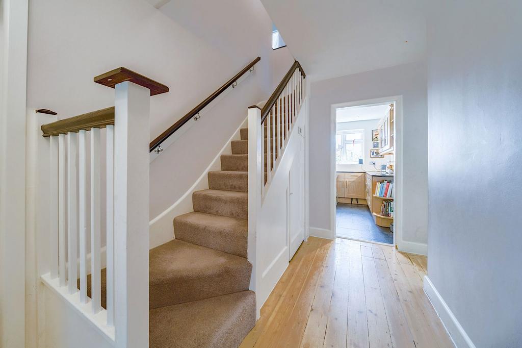 Upstairs, the main bedroom enjoys a calm position at the back of the house and benefits from its own en-suite shower room. Three further bedrooms are all well-proportioned, two of which span the full width of the house, and a modern family bathroom completes the accommodation.