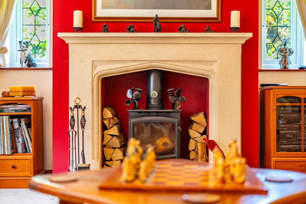 - Character features throughout including exposed beams, inglenook fireplace, and a wood-burning stove