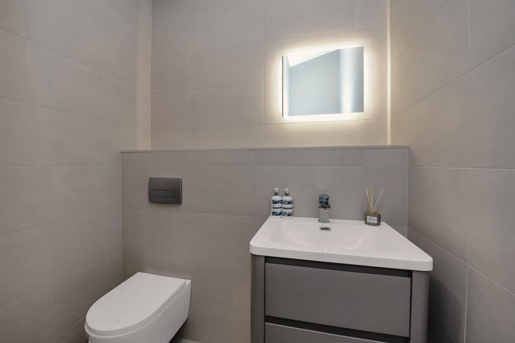 The large landing also hosts an entertainment zone, complete with a multi-functional games table for friends and family to enjoy pool, air hockey or table tennis. The bar area includes a drinks fridge, snack counter and seating. Adjacent to this is a stunning cinema room boasting a 120-inch screen with laser projector, surround sound system and 6 electric reclining chairs.
