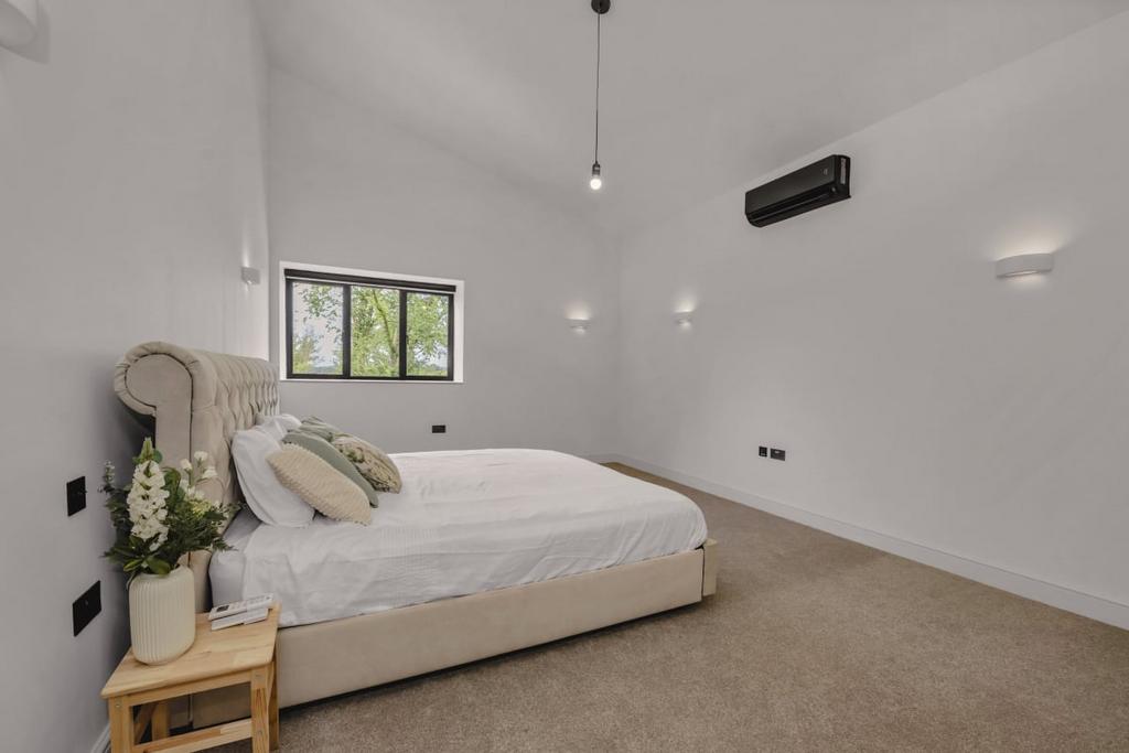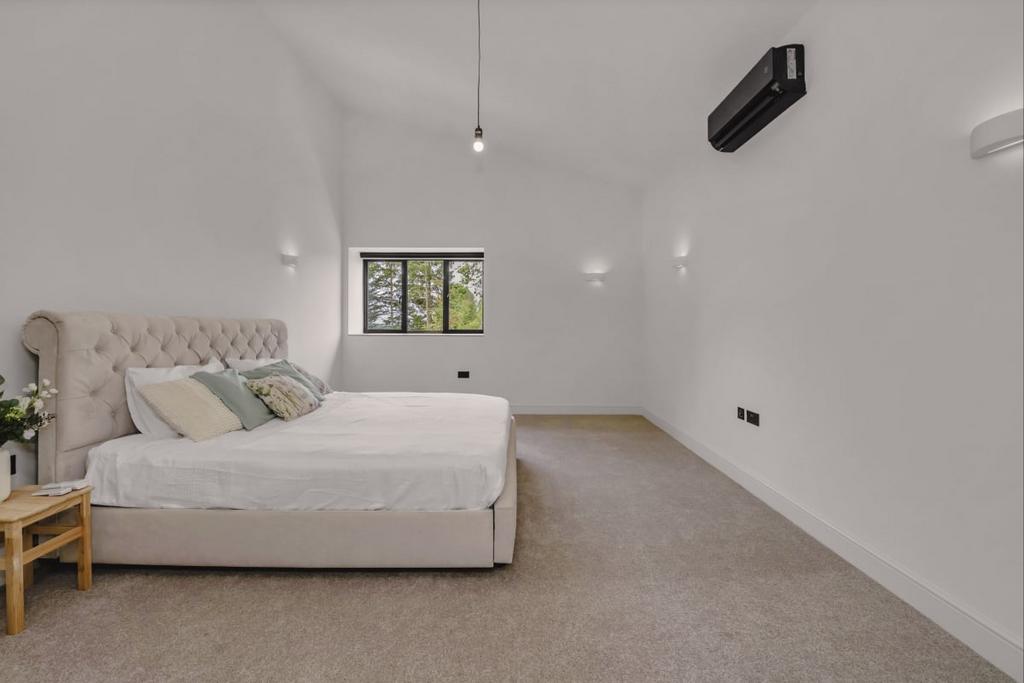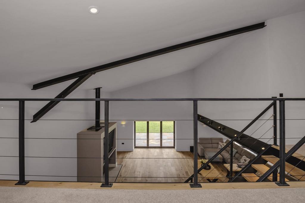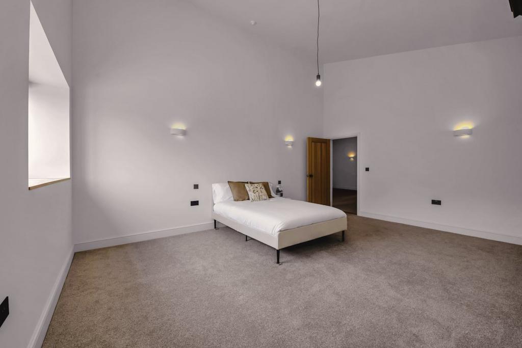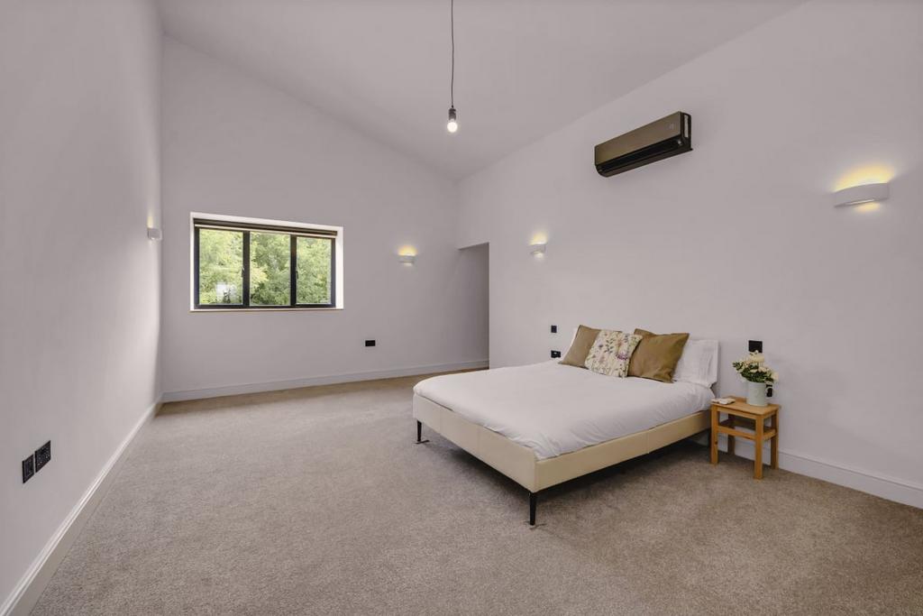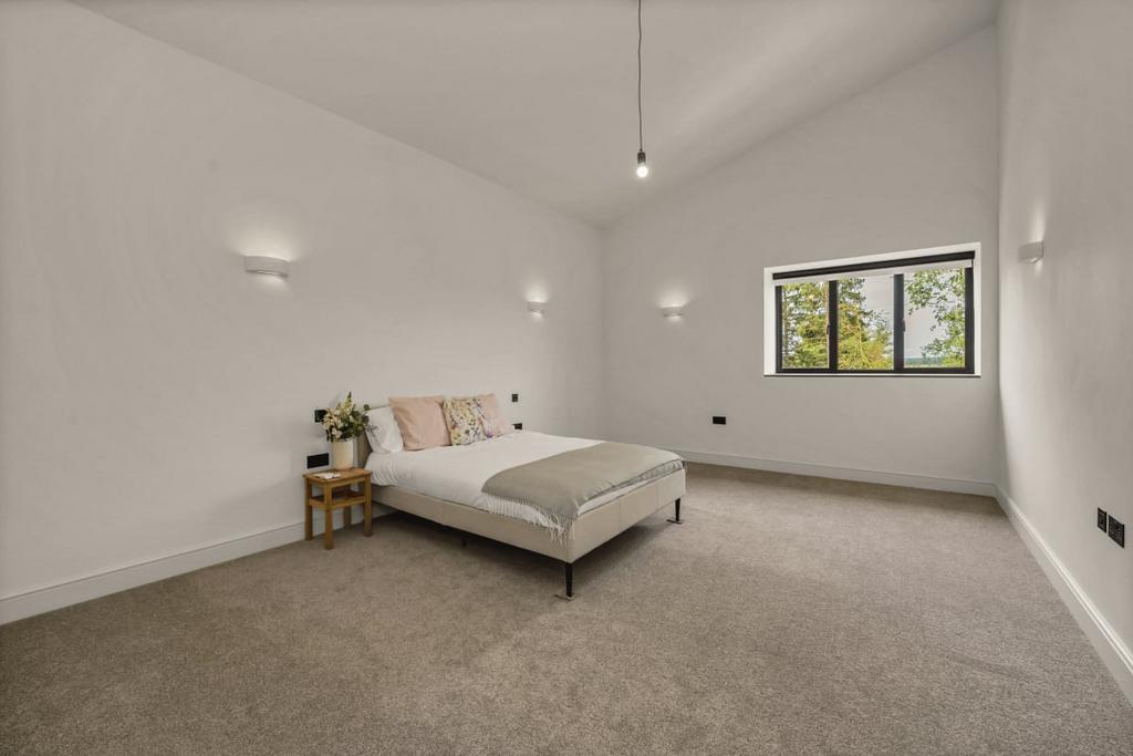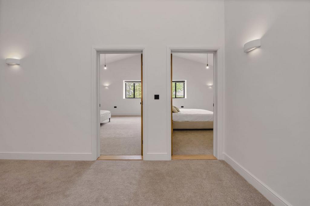 The expansive first floor landing leads to four opulent bedrooms, as well as a separate high spec family bathroom. Three of the bedrooms have generous en-suites and dressing rooms. The master bedroom is a serene retreat with views overlooking the garden and beyond into the rolling hills and fields of the countryside. All the bedrooms are bright and spacious with high vaulted ceilings.