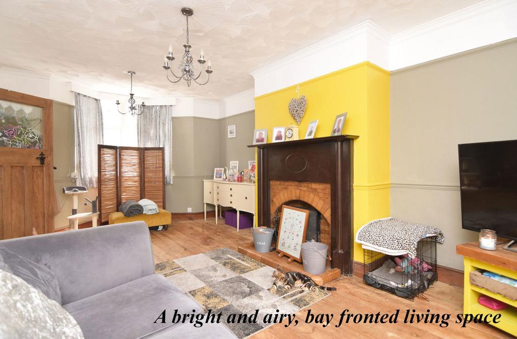As you enter the property, you’re greeted by a warm and inviting entrance hall, complete with its stunning original tiled flooring—setting the tone for the rest of the home. The ground floor effortlessly blends space, comfort and style, making it ideal for modern living. The generously proportioned living room, with its exposed wooden floorboards and attractive bay window, provides the perfect setting for relaxing evenings or entertaining guests. At its heart, a feature fireplace offers both a focal point and a cosy ambiance.