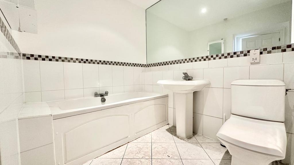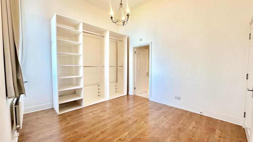 The master bedroom is generously sized and includes fitted wardrobes and a luxurious en-suite bathroom with both a separate bathtub and shower. The second double bedroom also benefits from its own en-suite, providing a perfect setup for sharers or guests.