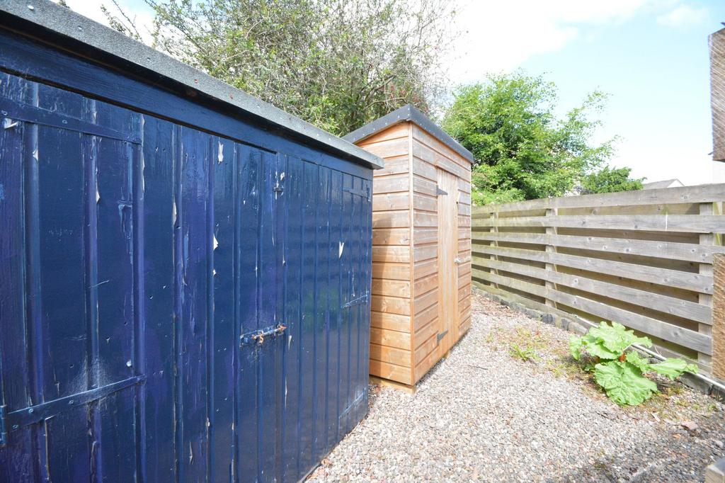 Occupying a corner plot, the property has a large stone chipped front driveway and extensive sunny westerly facing rear garden. The rear garden has been laid for ease of maintenance and is offered for sale with two timber garden storage sheds. The property also has a single sized lock up garage which requires repair.