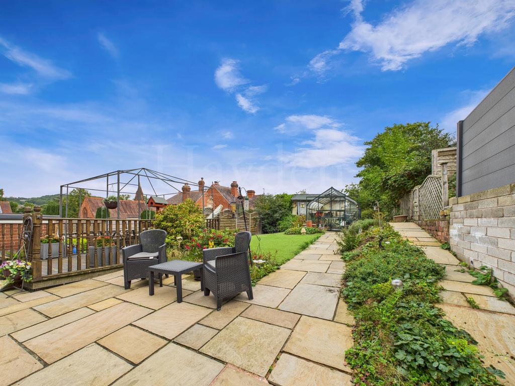 This beautifully maintained garden is a true highlight. Thoughtfully landscaped, it features a paved patio, raised decked seating area, faux lawn, and colourful planted borders. A greenhouse is tucked neatly to one side along with a wooden storage shed-perfect for gardeners or those simply looking to relax and enjoy the space. Views extend toward the picturesque Wribbenhall Church.