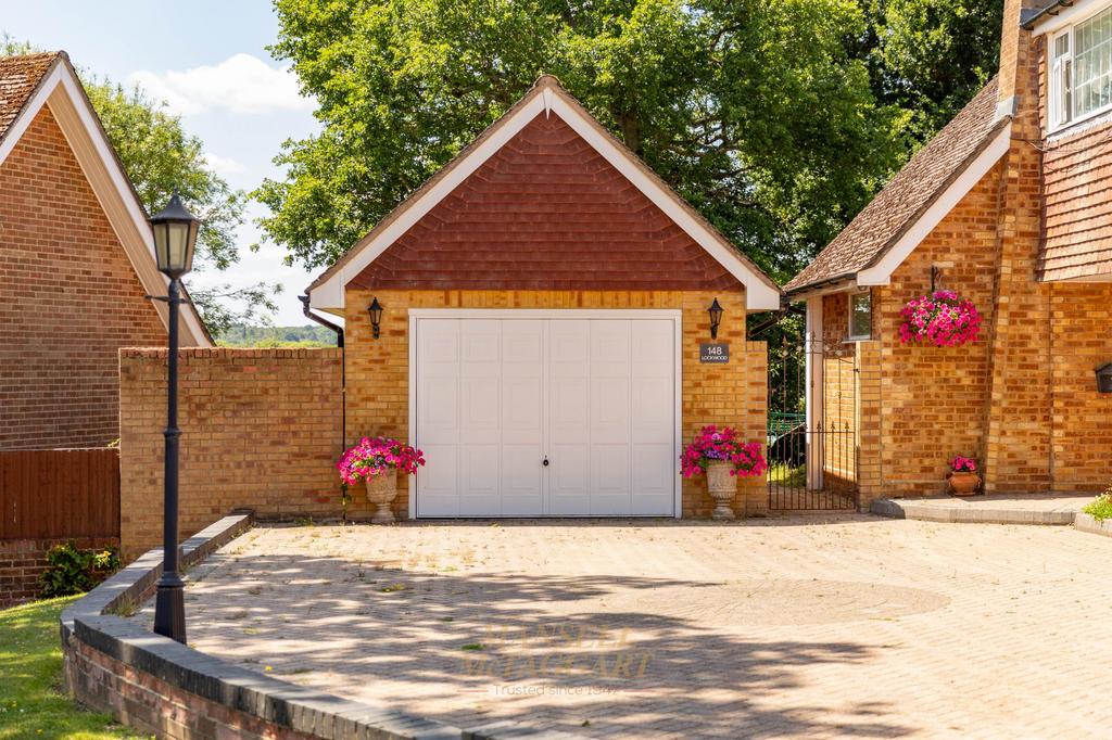 Outside, the property is set back from the road with a generous driveway providing off-road parking for several vehicles leads to a large detached garage with up and over door, power and light. There is side access to the rear garden with mainly laid to lawn with a variety of trees and hedging offering a good amount of privacy with a patio abutting the foot of the property.