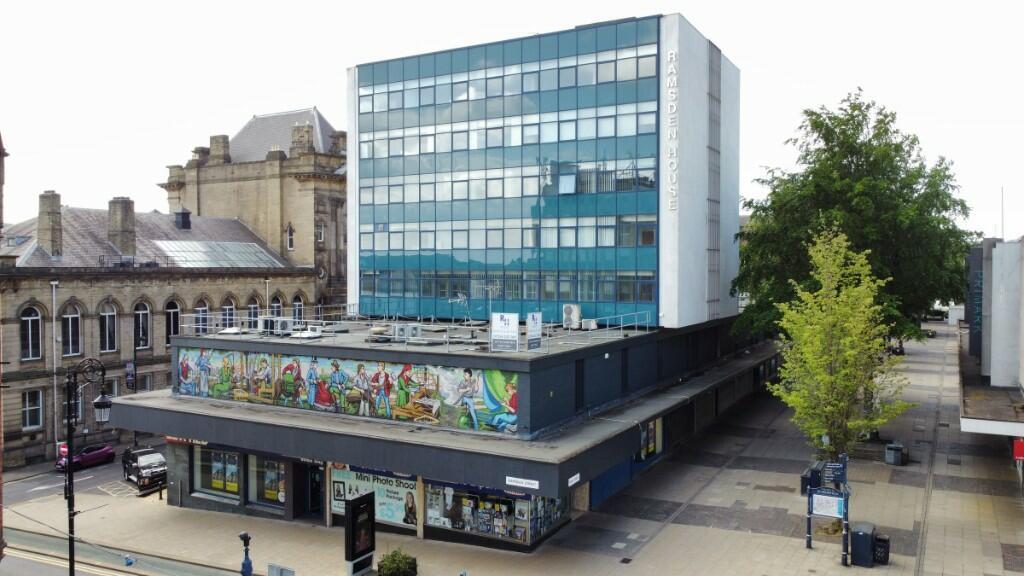 Ramsden House Business Centre is a multi-occupancy complex comprising ground-floor retail spaces (sold on long leases) and five-storey office block. Located in the heart of Huddersfield Town Centre with convenient transport links from the M62 and M1 Motorways. The ground floor houses 12 retail properties, with the first floor providing storage for these stores. The remaining floors consist of various offices, ranging from 103 to 2835 square feet. Modern shared kitchens and bathroom facilities are available on each floor, and the building is equipped with 24-hour access technology, a key fob entry system, and a modern entrance area.