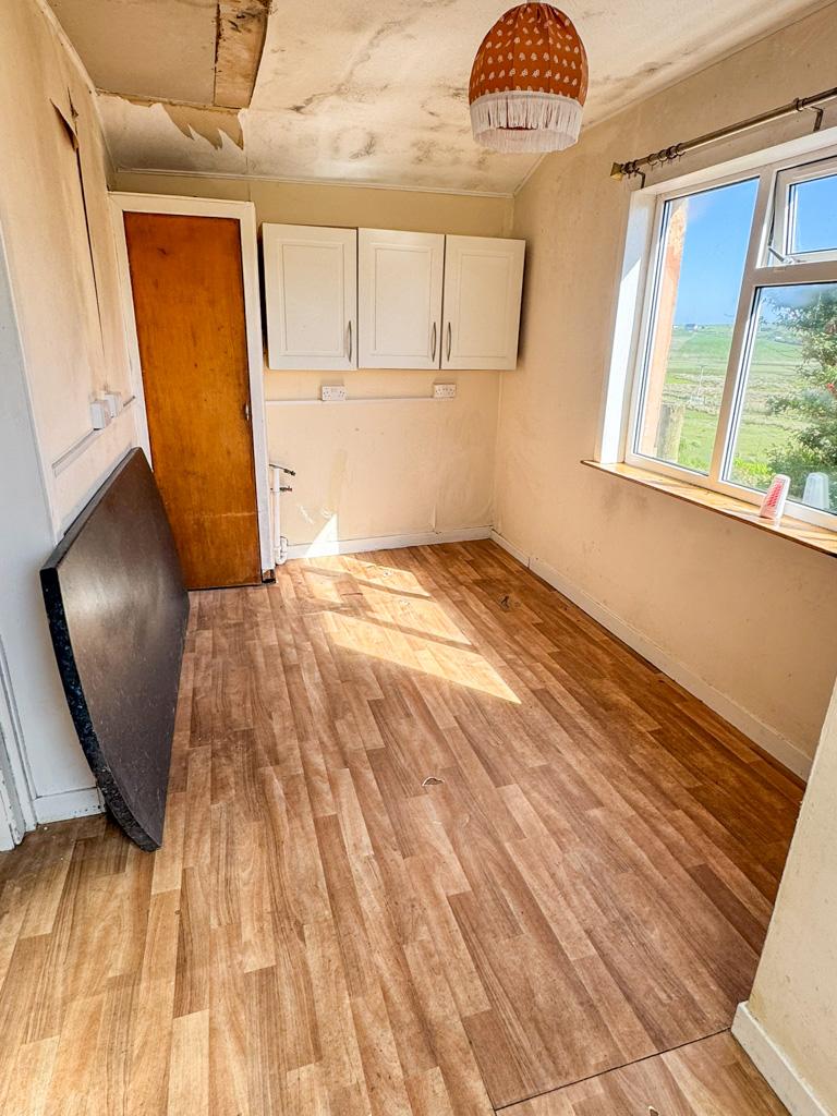 Laminate flooring. Window to side. Two fitted storage cupboards. Wall units. UPVC door to side.