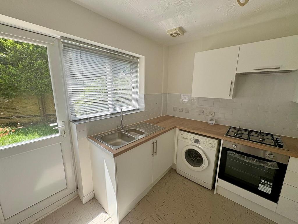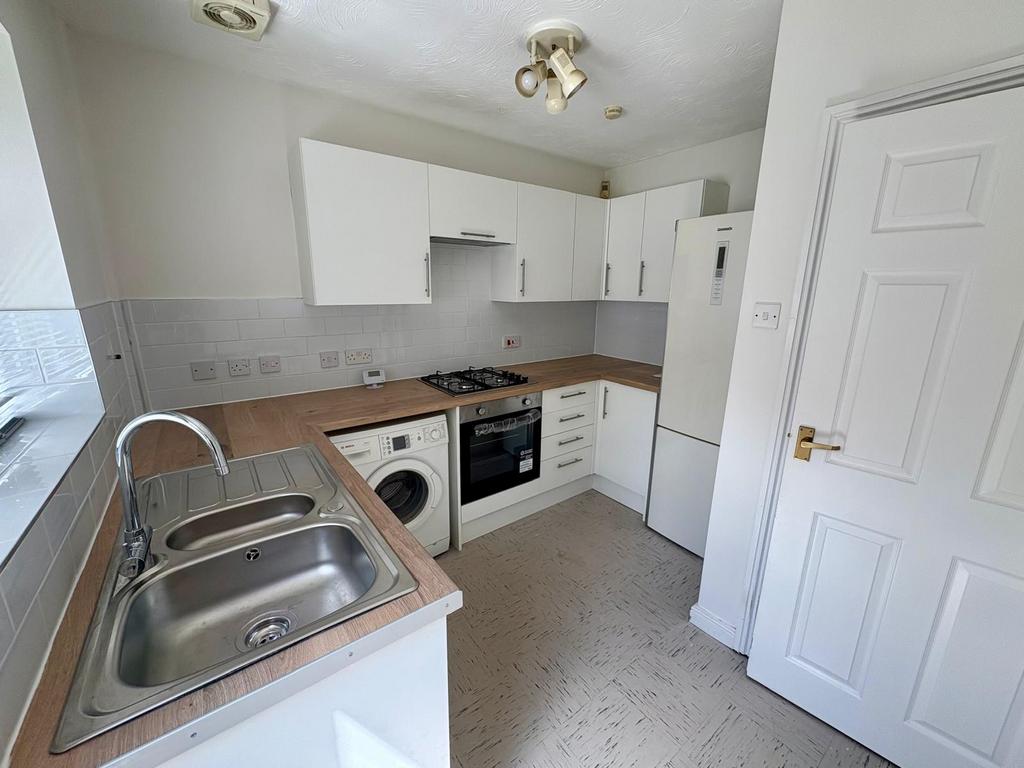 The kitchen has been newly fitted and includes a washing machine and fridge freezer.