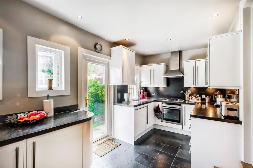 To the rear, the sleek, modern kitchen also opens directly onto the garden, making al fresco dining a breeze. There’s access to a handy cellar from the kitchen ideal for stashing bikes, wine, or all those extras you want out of sight. Upstairs, you’ll find three bedrooms, off of the characterful split level landing, the generous principal bedroom complete with en-suite shower room. The main bathroom is fully tiled, modern, and ready for busy mornings or long evening soaks. With scope to convert the loft and extend to the rear (STPP).