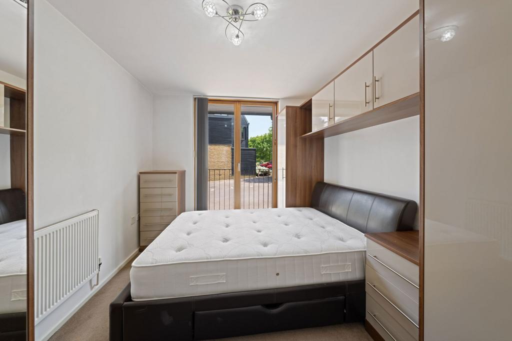 - The spacious double bedroom comes with fitted storage and a Juliet balcony for fresh air