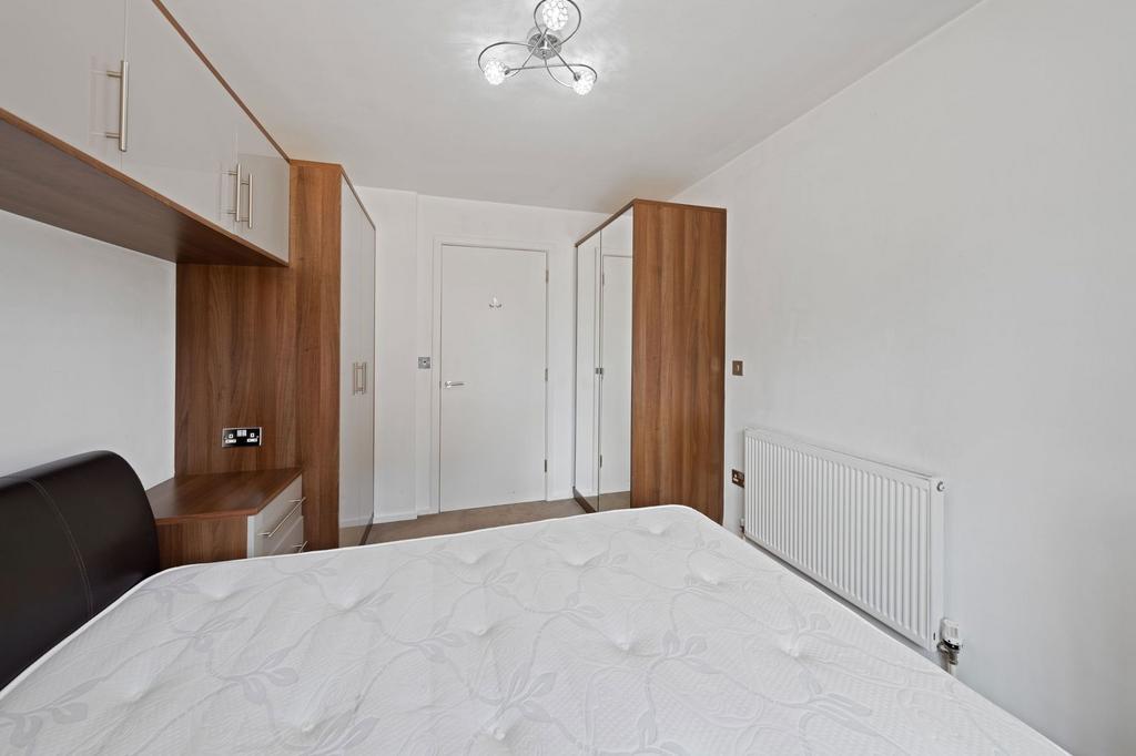 The bedroom is a generous double with plenty of built in storage including fitted wardrobes and overhead cupboards. A Juliet style balcony brings in natural light and fresh air, giving the room a bright and breezy feel. It’s a calm retreat at the end of the day.