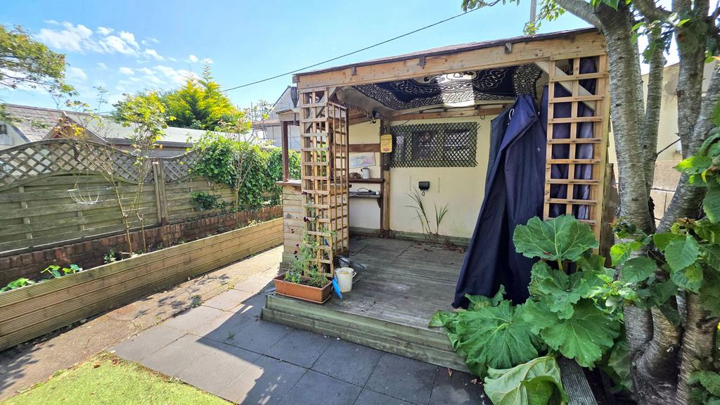 Outside, the rear garden offers a great space for entertaining, complete with a bar area that includes electrics. The property also benefits from a detached garage, providing secure parking and additional storage.