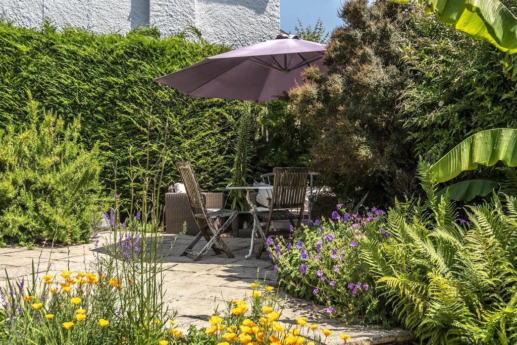 Front Garden - Enclosed and laid to stone shingle. Shallow steps leading down into a private and sheltered area with retaining stone walls and mature hedging. Once again, a superb area in which to enjoy the afternoon sun and a sheltered space in which to relax. Opening to the:-