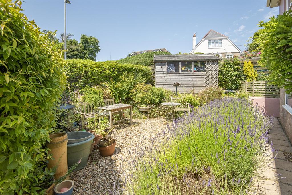 Rear Garden - Without doubt, a wonderful feature of the property, providing several areas in which to relax and enjoy the sun throughout the day or entertain guests. Lower and upper terraces are well enclosed by dwarf walls and timber fencing, together with mature hedging. Both terraces linked via shallow steps to the middle and side, with stocked flower beds at mid-point. Raised area of lawn to the side, well enclosed by mature hedging and timber fencing, with wrought iron garden gate to the lower terrace leading to the:-
