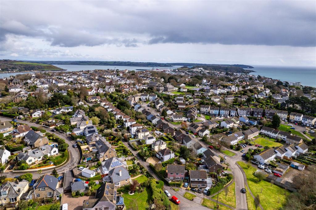 Bedroom Three - Broad uPVC double glazed window to front elevation with a far-reaching outlook over outer Falmouth. Ceiling light, wall light, radiator. Opening into the:-