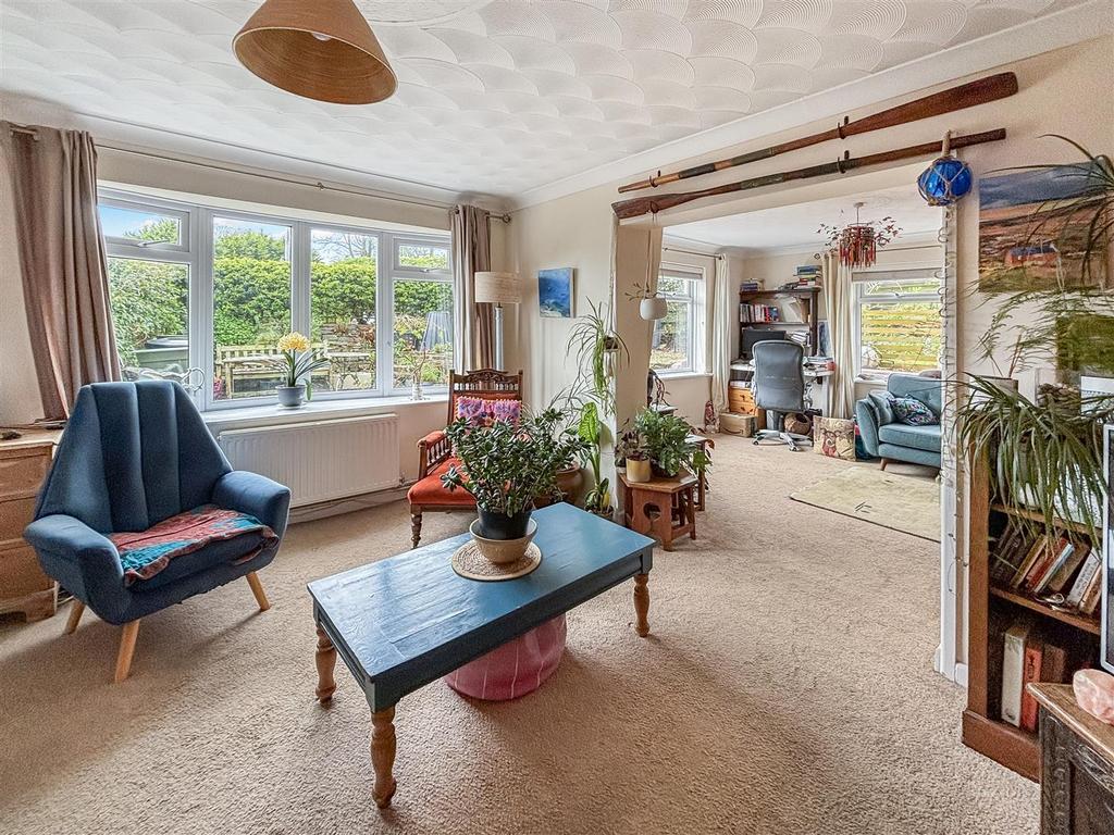 Double Living Room - An unexpectedly deep, bright and exceptionally spacious combined 'living area', joined by a door to the middle, and double aspect with three broad windows to the front and side elevations. Two radiators, TV aerial point, telephone point. Two ceiling lights. Half height under-stair cupboard. Panelled door to the:-