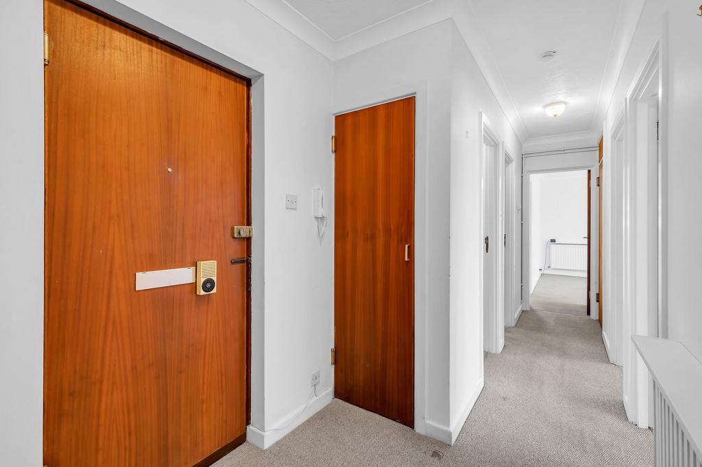 Flat entrance door to; HALLWAY entry phone, built in coat cupboard with shelving, electric meter and fuse box, further built-in airing cupboard with slatted shelving, ‘Honeywell’ room thermostat, radiator.