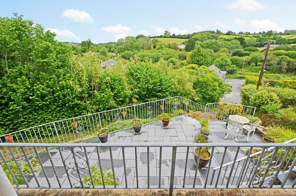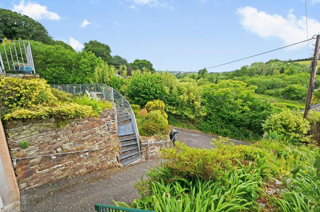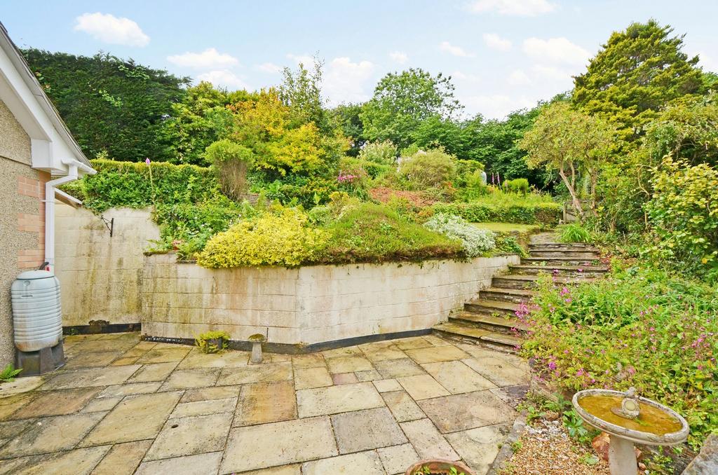 The property enjoys different pockets of space to enjoy, so you can enjoy the sun no matter what time of day. Steps rise to the property from the parking area to a raised terrace to the front where you can sit out the front and take in the views. There is then a further large terrace to the side with steps up to a lawned area, with established borders. Steps up to the top area which has a greenhouse and an area laid to lawn.