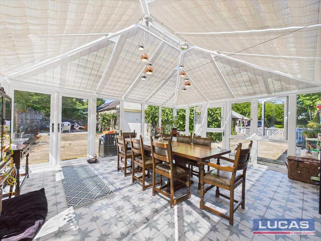 Seize this rare chance to own a stunning, spacious detached family home bursting with character! Nestled on the village outskirts with a private driveway off Brynsiencyn Road, its perfectly positioned near the A55 Expressway for effortless travel. Yr Efail delivers jaw-dropping gardenscomplete with an orchard, summer house, and outbuildings like a tavern, boiler house, workshops, and garageall set across a lush ¾ acre of mature grounds. Plus, enjoy two brand-new bathrooms, a separate WC all to an exceptional high standard, and a sprawling conservatory/diner!