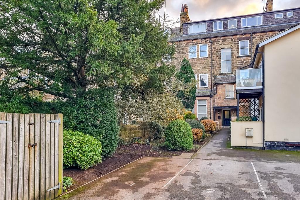Inside, you will find a welcoming reception hall leading to an open plan living, dining, and kitchen area with recently fitted bespoke cabinetry and quartz worktops. The large windows in this area provide stunning views overlooking The Stray, adding to the charm of the apartment. The principal bedroom is accompanied by a dressing room and an en suite shower room. Additionally, there is a second double bedroom and a main bathroom with a white suite and a shower over the bath.