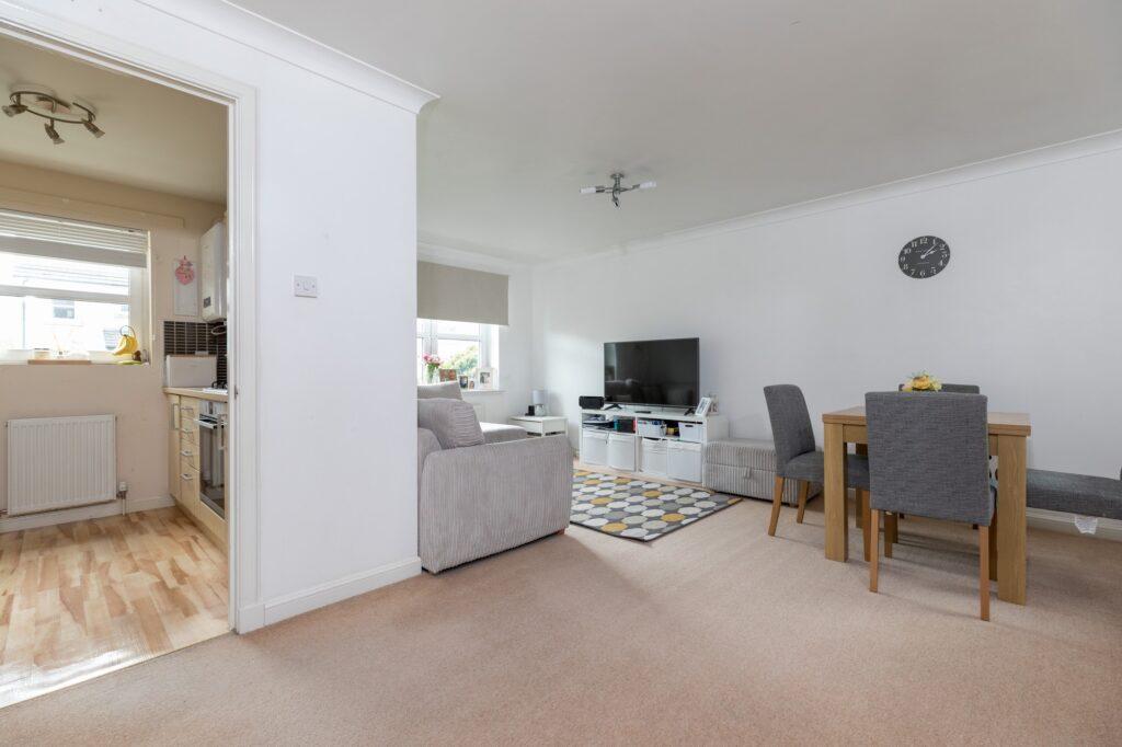 Communal entrance hall and stairwell. A welcoming reception hallway with storage. Bright and generously proportioned sitting/dining room. Well appointed kitchen with a range of wall mounted and floor standing units and complementary worktop surfaces. Bedroom one to the front has fitted wardrobes. Bedroom two, overlooks the rear and is also a double bedroom. An attractive bathroom with three piece suite, with shower above bath, completes the accommodation.