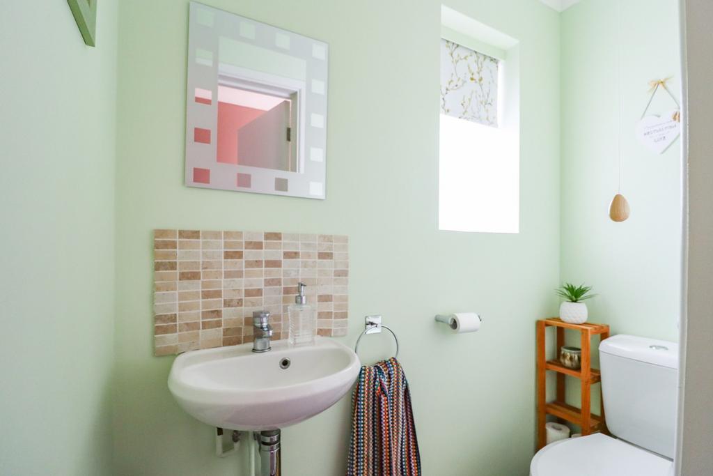 Upstairs there are two bedrooms in total, including a generous principal bedroom with built-in wardrobes. A family bathroom serves the bedrooms, fitted with a bath and shower over, WC, and wash basin.