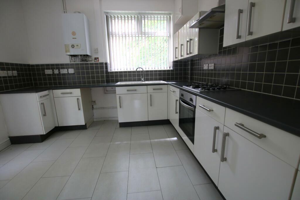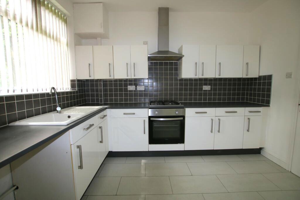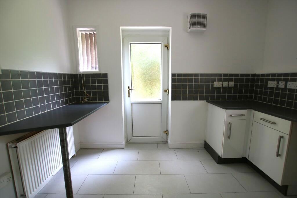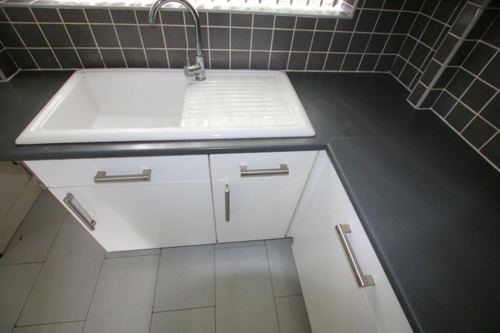 The kitchen comprises of: uPVC double glazed window, tube lights to the ceiling, fitted wall & base units, oven & hob, sink with mixer tap, laminate to the floor, double radiator and is plumbed for a washing machine.