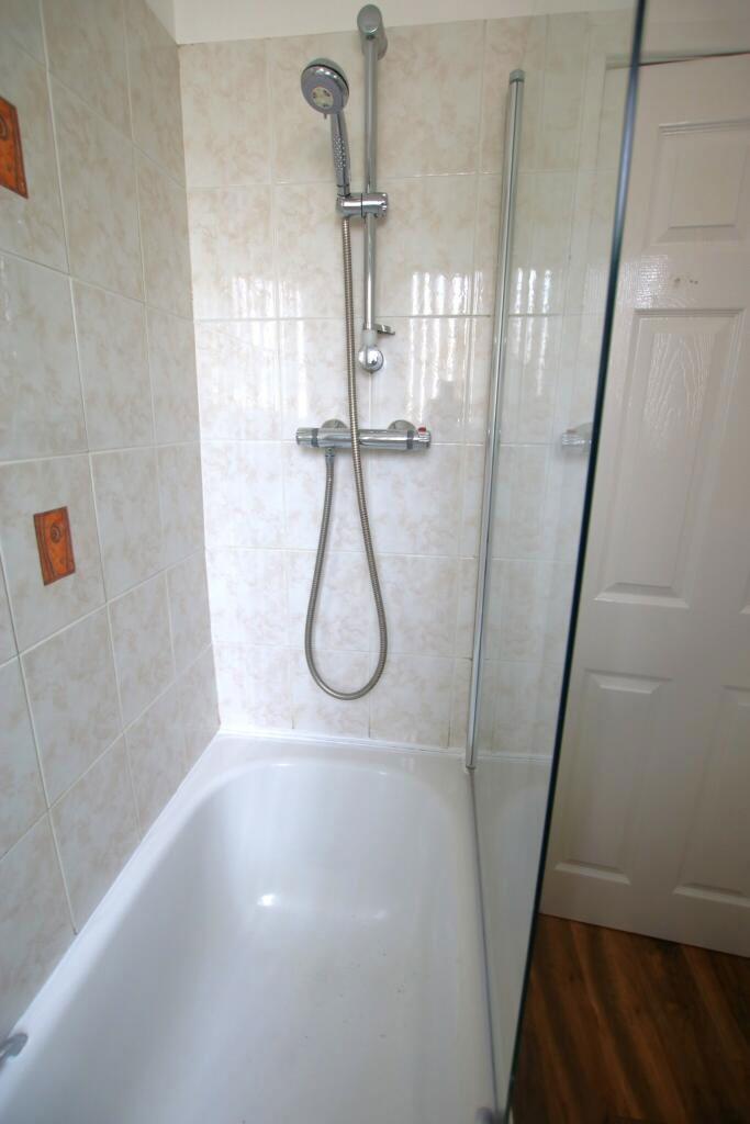The bathroom comprises of: uPVC double glazed window, ceiling light point, walnut wooden flooring to the floor, hand wash basin, W.C, bath with an overhead shower, double radiator and is partly tiled to the walls.