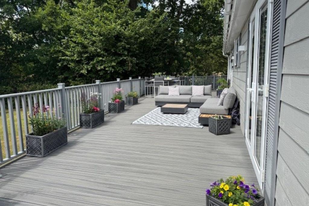 The dining and lounge areas flow effortlessly and open out onto a generous private decking area—ideal for relaxing with a morning coffee or enjoying al fresco dinners as the sun sets.