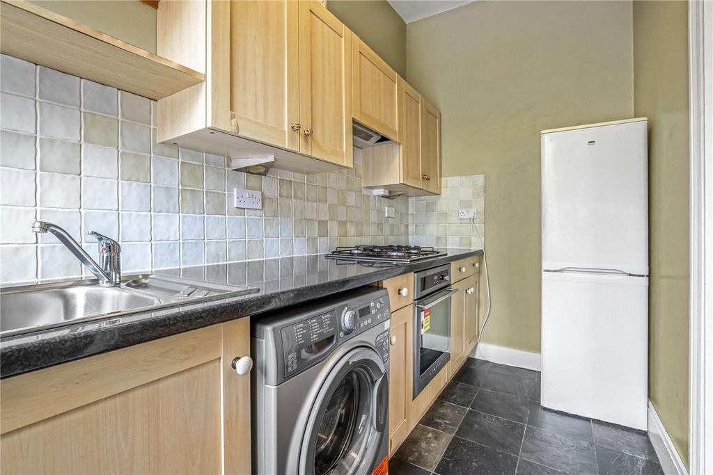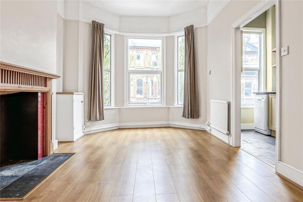 Charming property with spacious layout, high ceilings, bay windows, and natural light. Features include a double bedroom, front reception, kitchen, and bathroom. Great renovation potential.