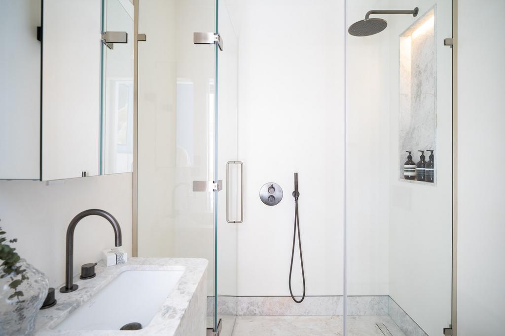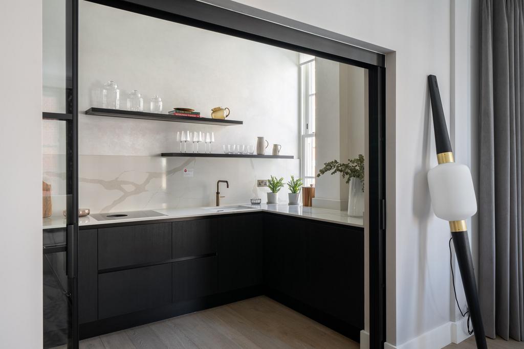The building offers a boutique collection of four residences within a building that has been completely developed behind the existing facade: offering three two-bedroom lateral apartments on the first, second, and third floors, and a three-bedroom duplex penthouse on the fourth and fifth floors.