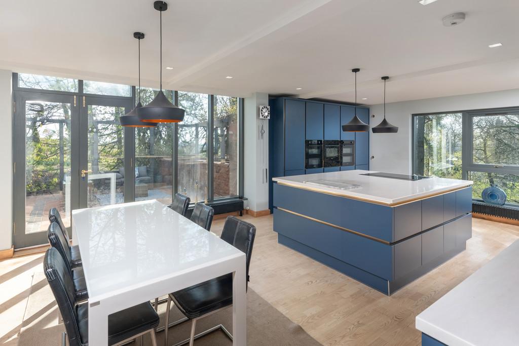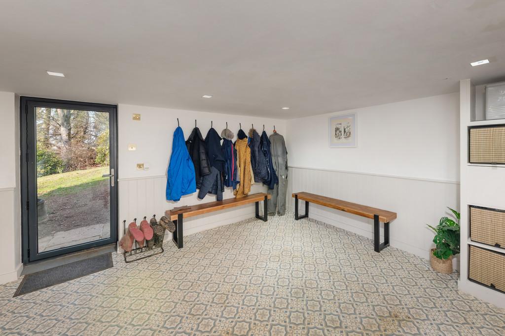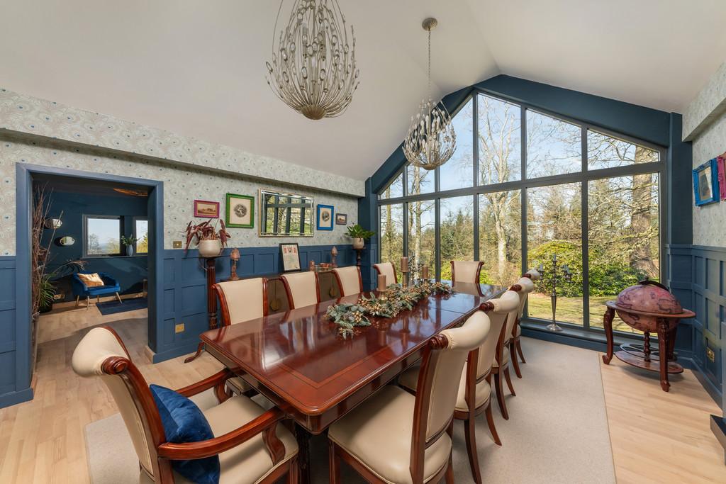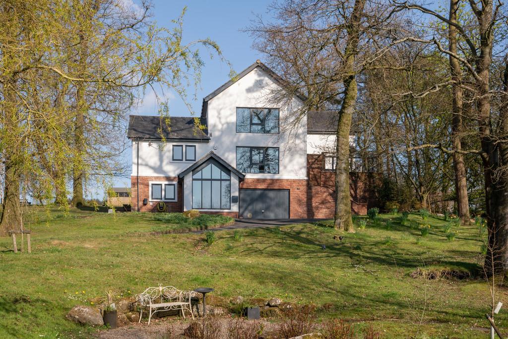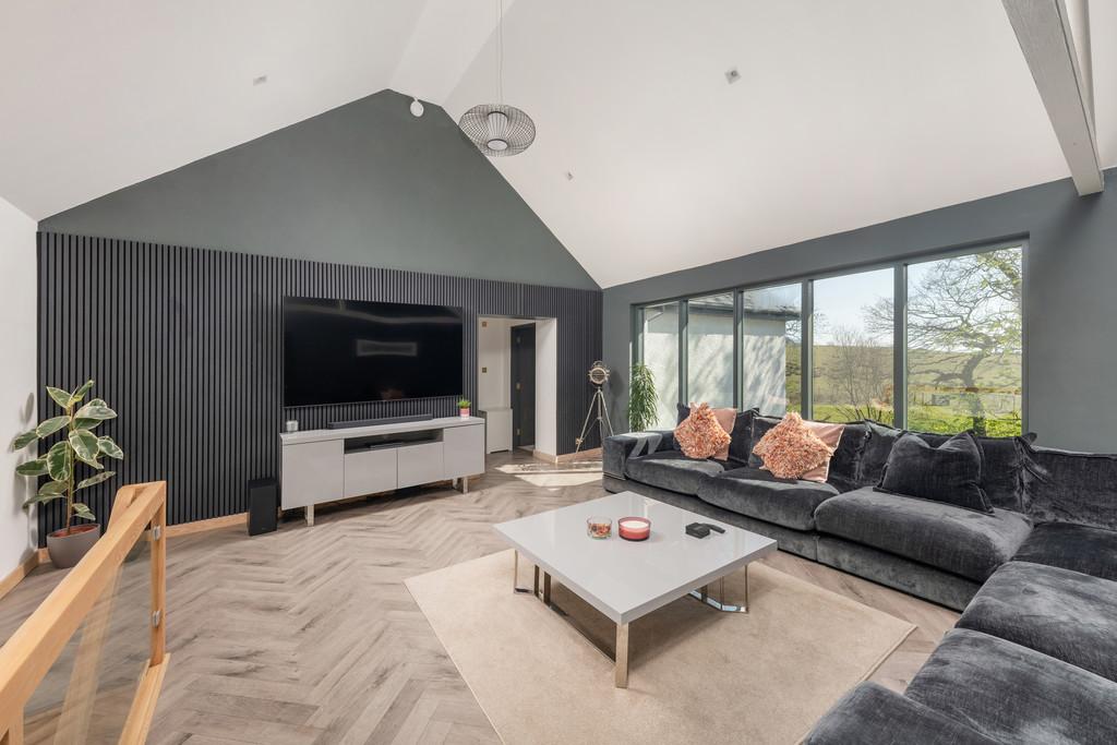 ACCOMMODATION Incredibly spacious throughout the accommodation is well suited to family living. The lower ground level houses a garage, the entrance porch and a sizeable boot room store and utility, which also provides an additional access to the garden. On the upper ground floor, the heart of the home is a spacious, modern dining kitchen with island and a large glazed window enjoying far reaching elevated views. Double doors lead from here out to a paved patio and the garden. From the kitchen the property has a lovely circular flow, leading in to a bar area and then through to a separate dining room space. There is also an en-suite bedroom on this floor which is perfect as a guest suite. The living room, another impressive space has doors out to the garden, and a large feature fireplace. Stairs also lead up from here to a spacious gallery landing on the top floor. The pool and gym area is accessed from the living room and can be seen through a large window. The pool space is fully tiled and in good condition throughout. At the far end is the plant room and a gym space. The remaining four bedrooms, three of which are en-suite are located on the top floor. The fourth, whilst not en-suite, has use of the adjacent family bathroom. There is a second sitting room with an impressive pitched ceiling and a large office space which, like the kitchen below, benefits from the superb far reaching views. Externally the property sits nestled amongst the trees in a large garden site and is approached through double gates up a sweeping tarmac driveway. Of particular interest though is the adjacent acreage with direct roadside access and stables.