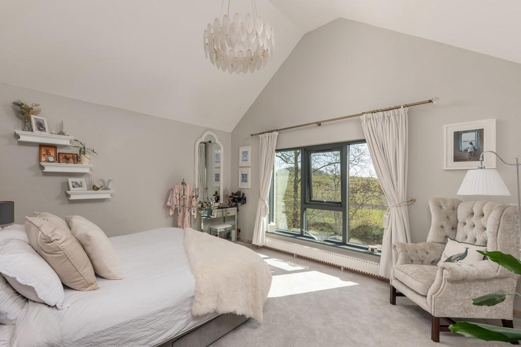 A simply stunning, spacious modern home with the benefit of an adjacent 5 acres, with stables. Superb far reaching elevated views. Excellent living space. Swimming pool. Solar panels. A rare gem of a home.