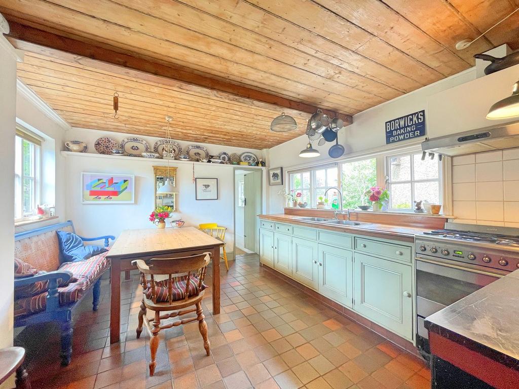Dating back to the 18th century, this substantial detached home seamlessly blends traditional character, modern versatility, space and what once was a thriving local shop. The property offers an artisan, bespoke living experience rich in history and charm. The former shop remains a striking feature of the frontage, complete with two original bay windows. Extending to 24 ft in length, this impressive space is ideal as a showroom, games room, or an area for entertaining guests. Above From the back of the Games room, stairs lead to a bright and airy studio, while below is a workshop, perfect for creative pursuits or practical use. The original shop kiosk has been thoughtfully repurposed into a home office, adding to the home's unique functionality.