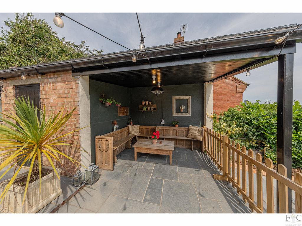 To the front, a resin driveway leads to a double garage with electric doors. Above, an independently accessed room offers versatility as a creative studio, guest room or home office. A raised terrace at the rear of the property captures the far reaching rural views, while a covered seating area ensures year-round alfresco enjoyment. Original brick outbuildings, all with power provide additional storage and utility space, including a garden WC and external laundry room.