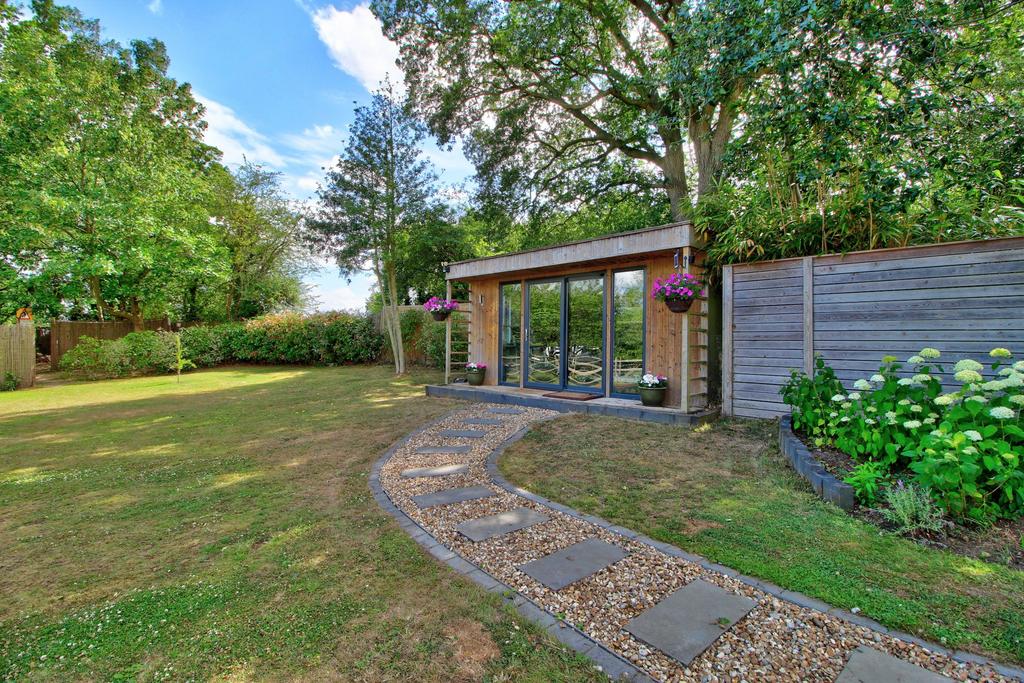 The garden has a striking patio area, with step-free opening from the kitchen bi-fold doors. The garden room is fully insulated and has WiFi connection, so makes an ideal office, gym or studio.