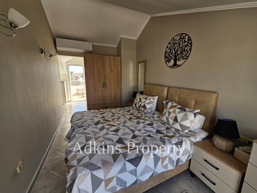 This beautifully maintained 3-bedroom duplex apartment is offered fully furnished and key-ready, ideal as a spacious holiday retreat or permanent home. Set within the peaceful Oasis Holiday Village, it enjoys a serene setting amongst pine forests and orange groves, just a short walk (approx. 950m) to an unspoilt, shallow bay on the Mediterranean—perfect for swimming and families.