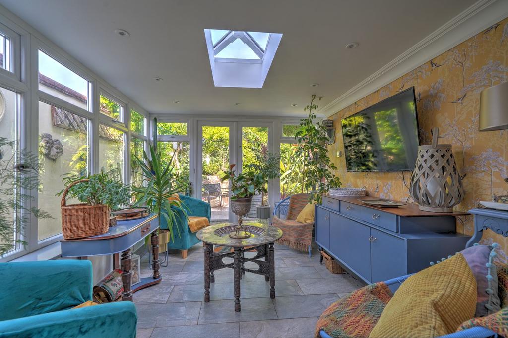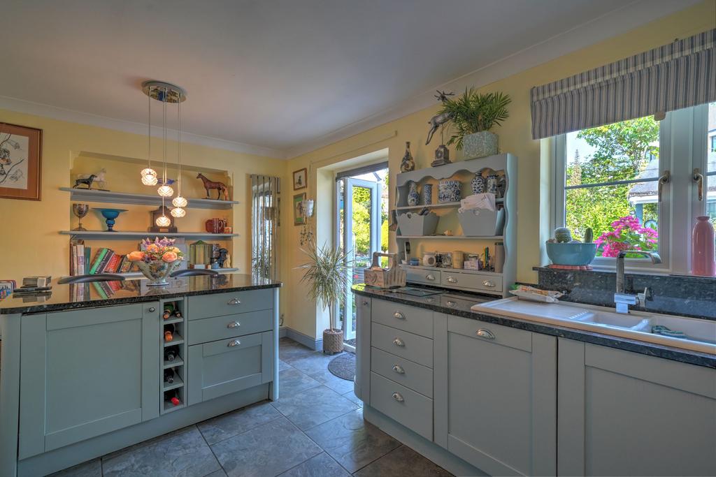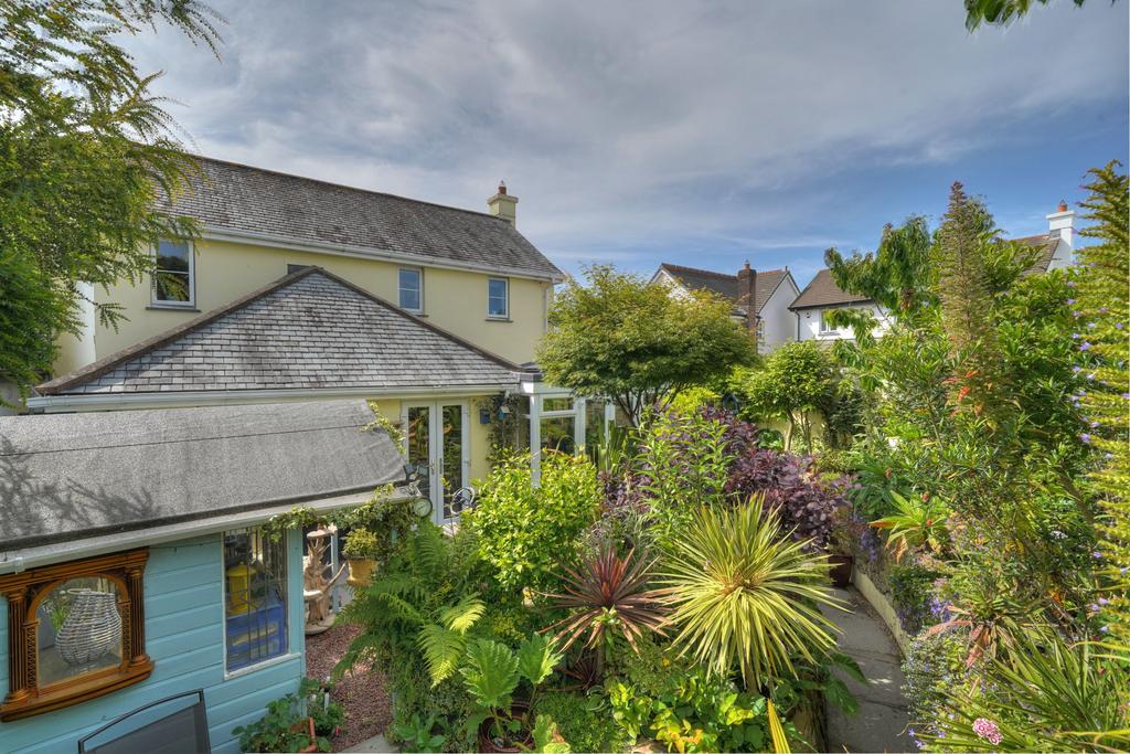 A resin driveway provides parking for two vehicles to the front of the property and leads to the garage/workshop. There are a plethora of plants, trees, and shrubs in the well-kept gardens, as well as a centre pond and a summerhouse/studio (insulated, with power and light). The layout on the ground floor briefly comprises; an entrance hall, cloakroom, sitting room opening through to the garden room (underfloor heating), a modern fitted kitchen (cupboard housing a newly installed boiler), marble worktops and an island/breakfast bar. Electric range-style cooker with an extractor canopy above. Integrated fridge, freezer and dishwasher. French doors lead to the rear garden. A useful utility room with access to the integral garage/workshop. On the first floor are three good sized bedrooms (two with built-in furniture), the main bedroom with an en-suite shower room and a separate bathroom.