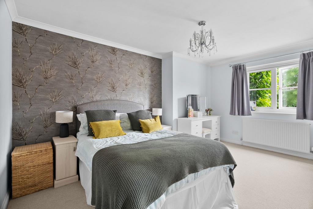 Upstairs, the landing provides access to the loft and an airing cupboard housing the hot water cylinder. The principal bedroom enjoys fitted wardrobes and a smart en-suite shower room, while three further bedrooms — two with built-in wardrobes — offer comfortable and well-proportioned accommodation. A family bathroom completes the first floor, fitted with a white suite and shower over bath. Many rooms enjoy pleasant views over the garden and adjoining paddocks.