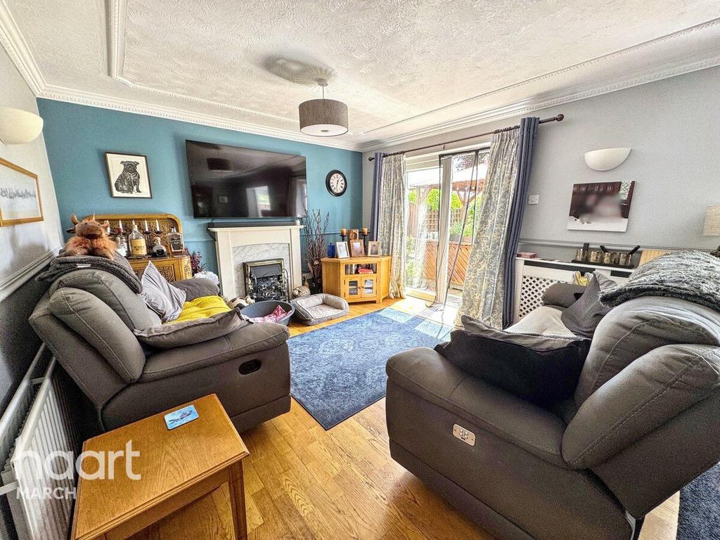 With a feature bay window to the rear aspect, double doors to the rear garden, electric wall mounted fire, dado rail and plaster work ceiling, wooden flooring.