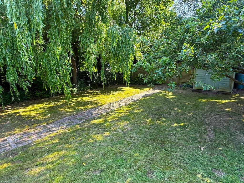 Externally Lyndhurst has a large south facing garden that has a paved entertaining seating area with pergola looking out onto a large lawn garden with side flower borders. There is a large timber garden shed and wood store at the side of the paved area and a further shed at the end of the garden.